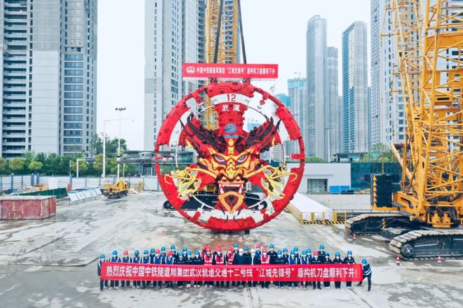 4月14日,由中鐵隧道局集團承建的武漢軌道交通十二號線(江北段)土建1標項目迎來重大節點,直徑12.56米的大盾構刀盤順利吊裝下井,“江城先鋒號”盾構組裝進入了最后的沖刺階段。