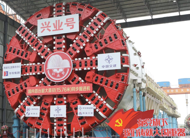 項目所采用的“興業號”盾構機,由中國交建自主設計、研發、制造,刀盤直徑15.76米,相當于5層樓高,整機國產化率98%以上。這也是目前國內15米級超大直徑盾構機中,唯一一臺可以實現600米超小轉彎半徑及同步拼裝功能的設備。