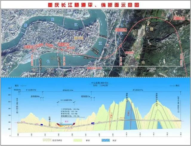重慶長江隧道平縱斷面示意圖