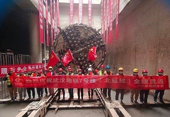 5月17日,隨著“昆侖33號”盾構機刀盤破土而出,武漢地鐵7號線騰龍大道站~巨龍大道站盾構區間左線隧道順利貫通。至此,由水電四局軌道公司承建的武漢地鐵7號線(北延)前川線5標盾構區間全線貫通。