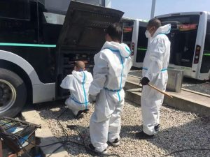 巴士二公司值守點針對個人防疫及車廂內消毒防疫工作開展專項培訓,經過面對面、手把手逐個“過堂”式培訓,確保一線職工能第一時間投入“戰斗”。駐守人員每天完成二次健康監測及核酸、抗原檢測,并做好辦公區域、車間、停車場等重點區域消殺防疫工作,確保復工復產后能正常運行。