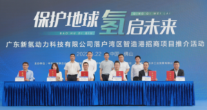 在項目落戶同期舉辦的“慶祝2022第53個世界地球日暨氫能在工業車輛及生產供能中的應用高峰論壇”上,天津新氫動力科技有限公司董事長陳海濤通過線上形式對外正式發布了構建“智慧、高效”氫能綠色搬運體系的核心產品:“氫+5G無人3T級叉車”、“氫+5G無人5T無人輸送車”、“固態金屬儲氫燃料電池叉車”系列全新氫能工業車輛。
