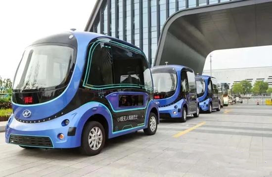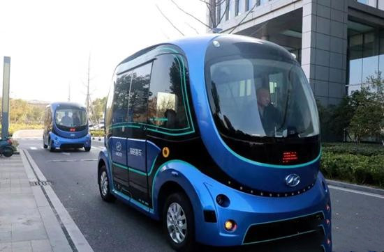 #2019年末,海格“深藍”率先在國內實現L4級無人駕駛客車的編隊行駛;