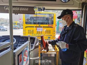 在加密發車的同時,公交車輛嚴格按照相關規定進行消殺。車輛運營每趟次進行消毒,在終點站進行通風的同時,車輛運營過程中駕駛員位置始終開窗通風,室外條件允許時提示乘客開窗通風。